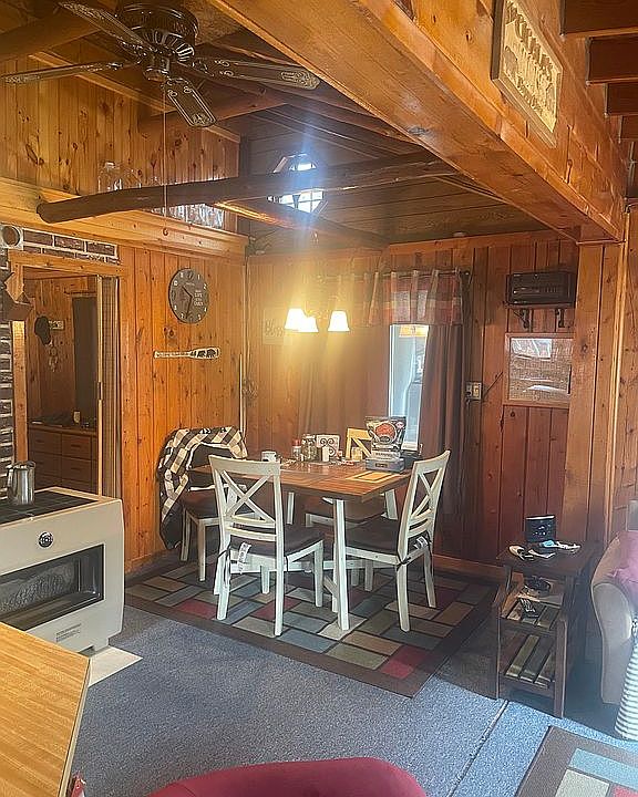 Located on West Branch Big Creek 2 Bedrooms 1 Bath, Kitchen, Living Room and Dining Area - Plus 3 Sheds Lot Size: Waterfront 60' - Street front 35' - 260' deep Taxes Approximately $650/year New metal Roof.. 6/2021. New propane furnace 2021. Vinyl Siding and Trim Exterior, Own Well and Septic, Private Road (only 10 cabins), Washing Machine Hookup, Attic Storage, Covered Carport, Covered Patio Area, Furnishings Negotiable, Near Riding Trails, Maintained Path to River, Refrigerator, Stove, included (good working condition)