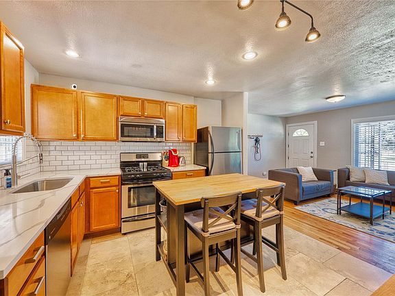 Spectacular remodeled ranch with main floor addition on spacious corner lot in the popular Sunnyside neighborhood! This fabulous home features updates throughout and includes 2 living spaces! The updated, open kitchen is a chef's delight with an eating space, SS gas appliances, center island, quartz countertops, subway tile backsplash and travertine tile floors. This amazing floorplan also features 3 bedrooms, 2 with hardwood floors, and a full updated bath with travertine tile. Newer windows, newer roof, newer A/C, & custom paint throughout. Fantastic, spacious corner lot with extended back patio, mature landscaping, front sprinkler system, utility shed and privacy fence. Lot offers enough space to add detached garage if desired! Close to parks and light rail and walking distance from multiple restaurants, cafes, grocery, shopping, and entertainment options off of 44th Ave., West Highlands, Sloan's Lake, Berkeley and Downtown Denver! Easy access to I-70 for commutes.