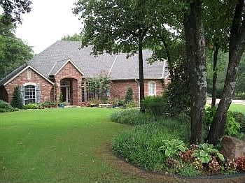 Acreage neighborhood with mature trees and located in Edmond School District. This Kanaly Home resale was built in 2000 with approx. 3712 Sq.Ft. with 4 bedrooms plus Study and Game room, 3 full baths, 1 half bath, 2 dining, and 3 car side load garage. Updates within the last 1.5 years includes: carpet, interior paint, professional landscaping, and added concrete on driveway for additional parking. This immaculate home is nestled among mature trees on a cul-de-sac lot on approx. 1.83 acres. Beautiful views out large wood cased windows on the back of the home. Wooded floors in the gallery leading to formal living and dining. French doors lead into the study with carpet flooring, ceiling fan, built-in desk and shelves, wainscoting, rich cherry wood finish, and 2 inch blinds. Master bedroom separate from other bedrooms with sitting area, ceiling fan, access to back patio, and private master suite supplied with double vanities, whirlpool tub, shower, tile flooring, built-in linen cabinets & medicine cabinets, and spacious walk-in closet with built-ins. Other three bedrooms on the other side of the home each with ceiling fans and walk-in closets. Bedroom #2 has private bath while Bedroom #3 and #4 share full bathroom. All bedrooms are on lower level of home. Bonus room upstairs with ceiling fan, built-in cabinets & shelves, and access to attic storage. Powder bath off kitchen area. Laundry room has tile flooring, extra counter space, wash sink, and clothes rod. Kitchen supplied with tile flooring, black appliances, dishwasher, microwave, double ovens, gas cook top, tile back splash, granite counter tops, center island, breakfast bar with tile counter tops, eating area, built-in desk/hutch, access to back patio, walk-in & built-in pantry, under counter lighting, lazy susan, and open to family room. Family room has built-in shelves and entertainment cabinet, brick fireplace, and carpet flooring. Extensive professional landscaping surrounds home with lush greener