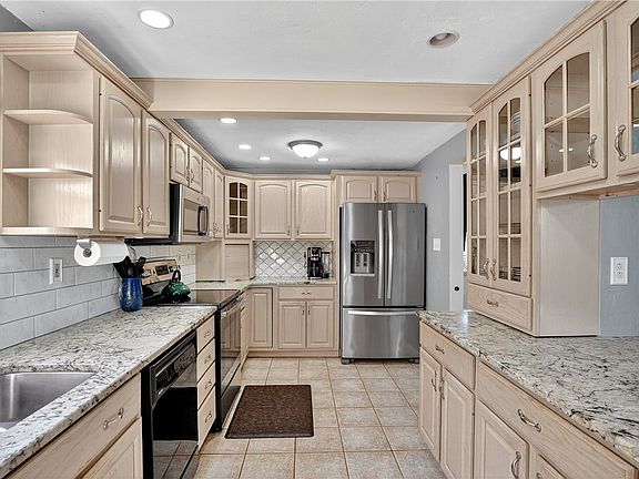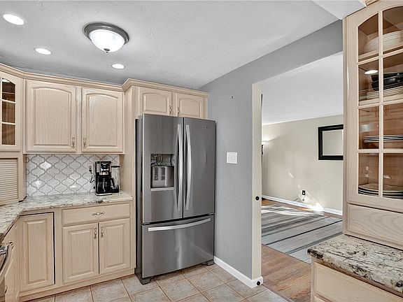 Sleek granite countertopsFinished lower levelFresh paintNatural lightAbundant storageCozy gas fireplaceVaulted ceilings