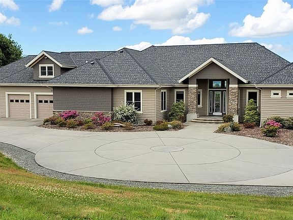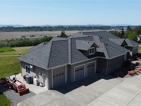 High quality custom home on 9 acres featuring over 6420 sq ft of elegant living. Unsurpassed westerly views of the Olympic mountains, Puget Sound and the Skagit Valley. Main floor includes: Chef's dream kitchen and oversized pantry, large slider leads to lighted lanai to enjoy the view; Gorgeous master w/ en suite, soaking tub, massive walk-in closet; Theatre room with 106 inch screen; Dining room; Fitness/Hot tub room; beautiful office; large 3-car garage. Loft provides 657 sq.ft 2nd Mstr Suite. Lower level features: Wonderful MIL space; Craft/sewing room; Storage/mechanical room; Studio (currently used as in-home salon); 2-car garage. Extras: Radiant Floor Heat, Circulating Hot Water, security system, audio speakers throughout