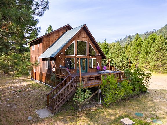 Picture-perfect setting near Lake Wenatchee! This beautiful 3-bedroom / 2-bath / 1,482-sqft chalet features cathedral ceilings, lots of natural light, open loft, and includes all furniture for an easy move-in. The huge 936-sqft garage provides terrific year-round access and tons of storage. Level 5.4 acres with maturing pine trees, spacious deck, hot tub, and views of the surrounding mountains. Only 22 miles from Stevens Pass and just minutes from the Lake Wenatchee State Park!