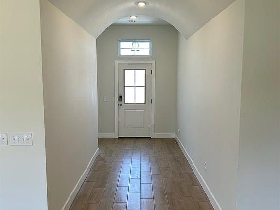 This beautiful home has lots of wow factors! As you enter into the home you will love the barrel ceiling leading from the entry to the living room. The living room is spacious with wood tile running throughout. The kitchen is loaded with custom cabinets, a large island, thick quartz tops, farm sink, under cabinet lighting, vented decorative hood, stainless steel Samsung built-in appliances and more. The primary bedroom is huge and enters into a large primary bathroom with soaker tub, tiled doorless shower, two sink vanity and large closet with seasonal storage. Both spare bedrooms are roomy as well. Fantastic covered back patio. Located on a large corner homesite! The neighborhood pool and clubhouse with fitness center and gathering hall and playground are close by for easy convenience!