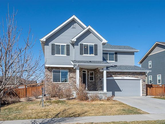 Beautiful two-story with a large backyard, conveniently located near the Gaylord Convention Center, DIA, open space, parks, trails, shopping, dining, and entertainment. This bright open floorplan includes hardwood floors throughout the main level, a spacious primary bedroom with a walk-in closet and private bathroom, a large non-conforming bedroom currently being used as a recreational room—easily converted into a massive true bedroom with the addition of a closet—two secondary bedrooms, and a full bathroom. No need to worry about storage—this home features a rare unfinished basement for the area, complete with rough-in plumbing for future customization or extra space. The oversized 2.5-car garage adds even more versatility providing extra room for parking, storage, or even a workshop to suit your needs. Step outside to the expansive backyard that’s perfect for entertaining, featuring a huge patio, privacy fencing, and a shed for extra storage. for a workshop, storage, or extra gear at the back. Smoke free and pet free home. Don’t miss this amazing opportunity to own this two-story in the perfect location!