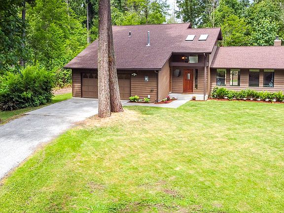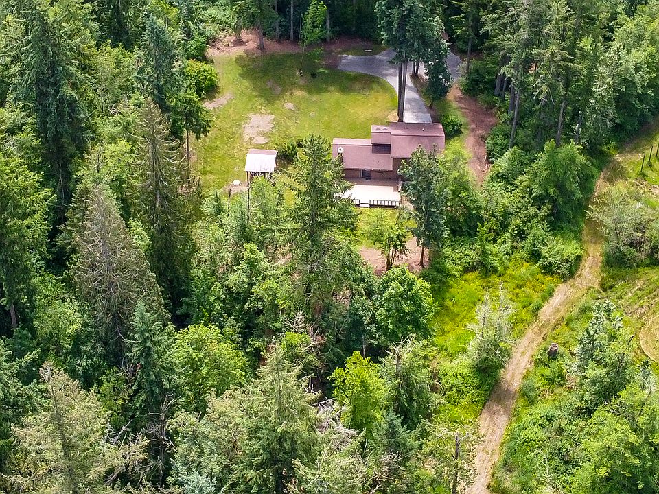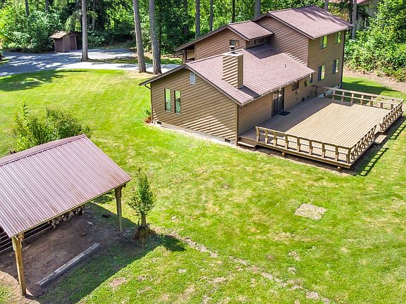 Custom built home on 6.89 Acres, in highly desirable Dieringer school district. The mostly wooded land gives you privacy and seclusion, yet you are just a few miles from Bonney Lake, Lakeland Hills, Auburn and Sumner. The home opens to an open floor plan for family living space with wood burning stove and custom hard wood flooring. The Kitchen has stainless appliances, marble countertops and lots of storage and counter space. The Master bedroom is the entire upstairs space with on suite bath and walk in closet. Two large bedrooms downstairs with oversized laundry room. When you step out on the deck you have plenty of room to entertain. The outbuildings include an open woodshed and a small storage shed. But there is plenty of room to build your custom garage or outbuildings.