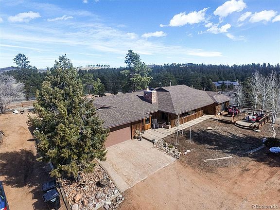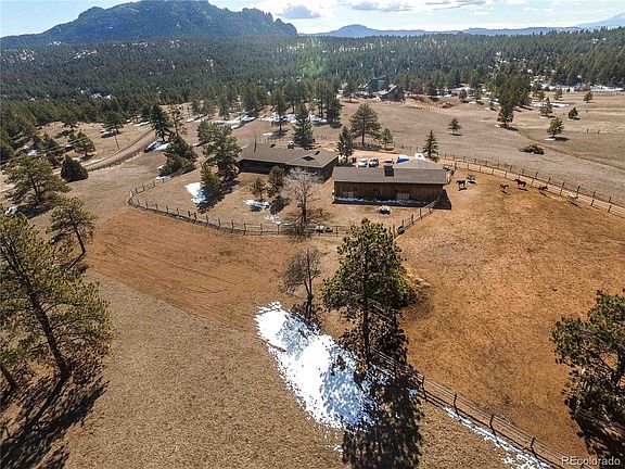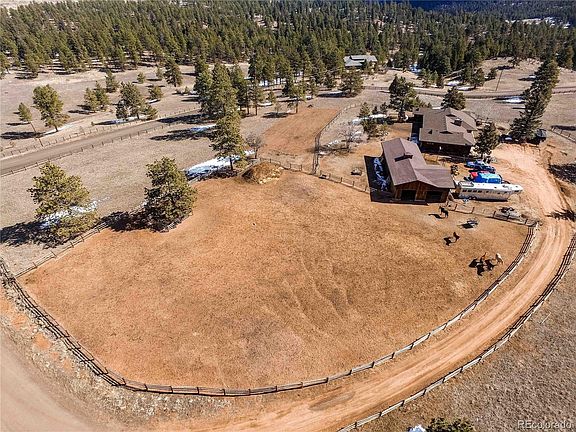 Private Equestrian retreat nestled on 10 acres surrounded by endless horseback riding, trails, hiking, biking, fishing, with access to the Colorado Trail and Pike National Forest. This gorgeous Ranch style home has main level living with a remodeled dream kitchen, alder cabinets, soap stone counters, upgraded appliances and exquisite pine flooring throughout. Master suite opens to a private patio, master bath, and has breathtaking views! Equipped with a barn/loafing shed, 4 10x12 stalls, electric/water, fencing, pasture grazing area, RV parking with electric oversized door, large hay storage area, and arena with sandy soil. Extra large two car attached garage with a bonus room, that can be used for your dream work space, hobby area, or bedroom. Make this your dream home before its gone!