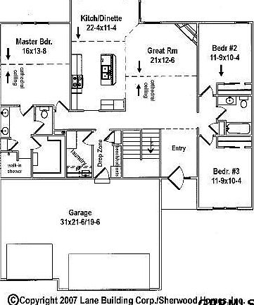 Lane Building Corp's new Alexander Ranch plan. 3 car garage, cathedral ceilings. Low maintenance vinyl siding and windows. Cultured stone fireplace face. Drop zone off garage entrance has a bench and storage cabinets to keep clutter out of the Kitchen. Master Bath features a huge, tile "spa" shower. Maple cabinets throughout. Centennial has a very low tax levy compared with most new construction areas.