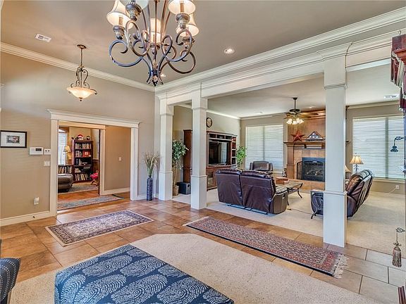 ** PRICED TO SELL ** Lovely home in the very desirable Enclave of Stonebriar! This gated community in Edmond offers two pools, clubhouse and sidewalks throughout this lovely neighborhood! You will appreciate the custom touches in this well maintained home! Beautiful crown molding and stunning wood detail abound! Large living room with fireplace , surround sound and nice natural light. Kitchen opens to the living room and features ample counter space, stainless steel appliances and breakfast bar! Spacious split floor plan with private master suite with jetted tub and Austrailian closet. A study with ample wood details and a guest room with full bath on the master wing and the third and fourth beds with Jack and Jill bath on the other side of home. Tons of storage in this home! Zoned Heat and Air, two H2O tanks, dimmer lights, wood blinds and so much more! Great home for family living and entertaining! You must see this home to appreciate! * SHOWING FOR BACKUP OFFERS *