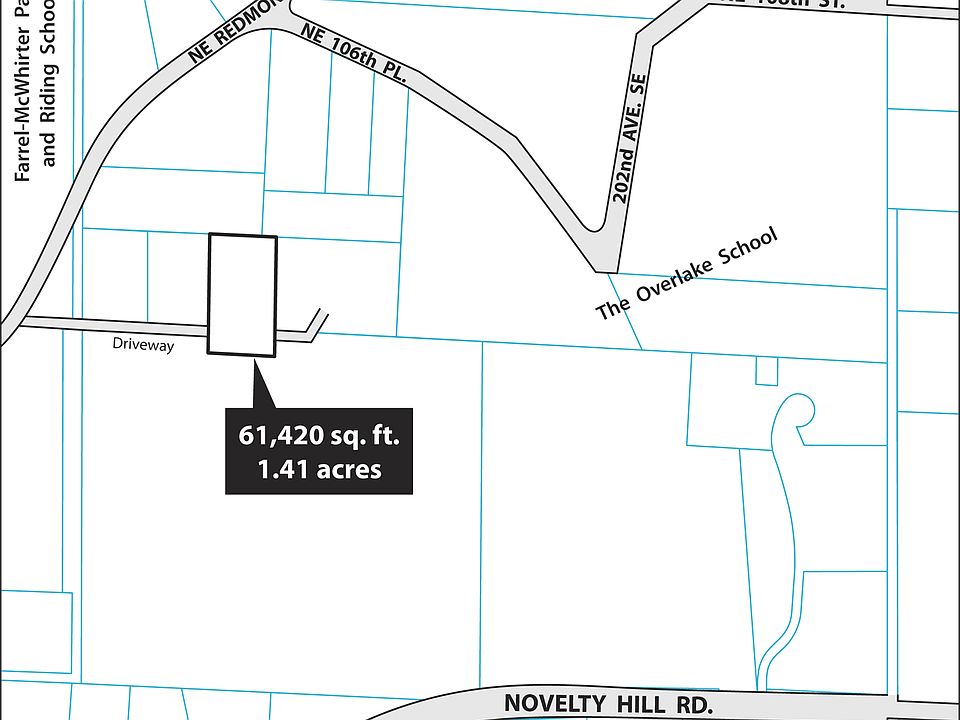 Premium vacant land in ideal close-in location near Microsoft, dwtn Redmond & vibrant Redmond Town Ctr. Quiet, private, beautiful, encased in greenery & ready for your vision. GAS, ELECTRICITY & WATER on-site. Farrel-McWhirter Park/Riding School across street. The Overlake School (acclaimed private prep school) just north & east. Equestrian boarding facility nearby or board on your property. Zoned for one house-Builder suggestions available. Highly rated Lake WA Schools. Exceptional opportunity! Buyer to verify lot size and all information.