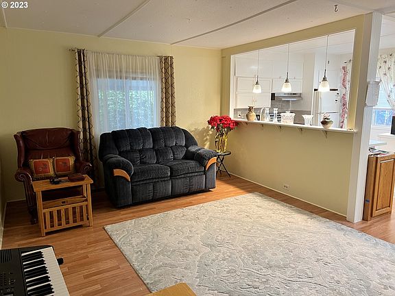 Affordable living in spacious 2 bed/1.5BA, 1296 SqFt MFH located in Two Rivers Coop. Beautiful kitchen with island bar, all hardwood cabinets, newer Refrigerator, & rare antique stove! The dining room is next to the kitchen, and has plenty of room for guests! The Family room is cozy and inviting, with many windows to bring in the natural light! Large enclosed patio, & a shed. Space Rent is $650, W/S/T included, located in 55+ park minutes from Oregon City! W/D Included!