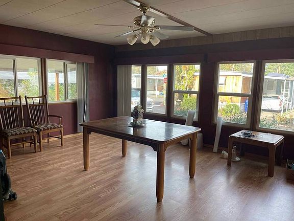 Here is your opportunity to get into a senior park where eventually you would own the land. Spacious family room with many windows, kitchen has side bar and plenty of room for storage. Master bedroom will easily fit a king size bed. The home sits on one of the best lots as the back yard has a gate to Meldrum Bar Park which is the only one in the park. Completely fenced back yard large covered front deck and another storage shed under carport that has been extended.