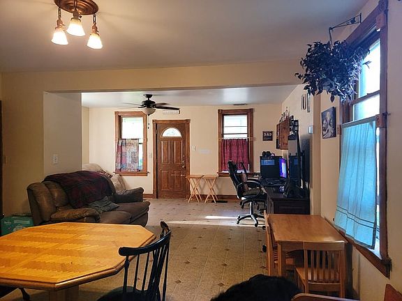 Wonderful, furnished single-family home on a double lot with a large yard including apple trees, a shed, and a fenced in backyard! An older home, estimated to have been constructed ~100 years ago with a stone and cinder block foundation, a concrete pad basement with interior and exterior access, and full bathrooms on both main levels. Other details: - Forced-air furnace (with smart thermostat) - Gas oven range - Gas water heater - Updated electrical system - Laundry hookups on second floor and in basement - Ladder-required access to the unfinished attic - Metal roof Shed contents include a lawn mower, snowblower, and various other odds and ends from previous owners.