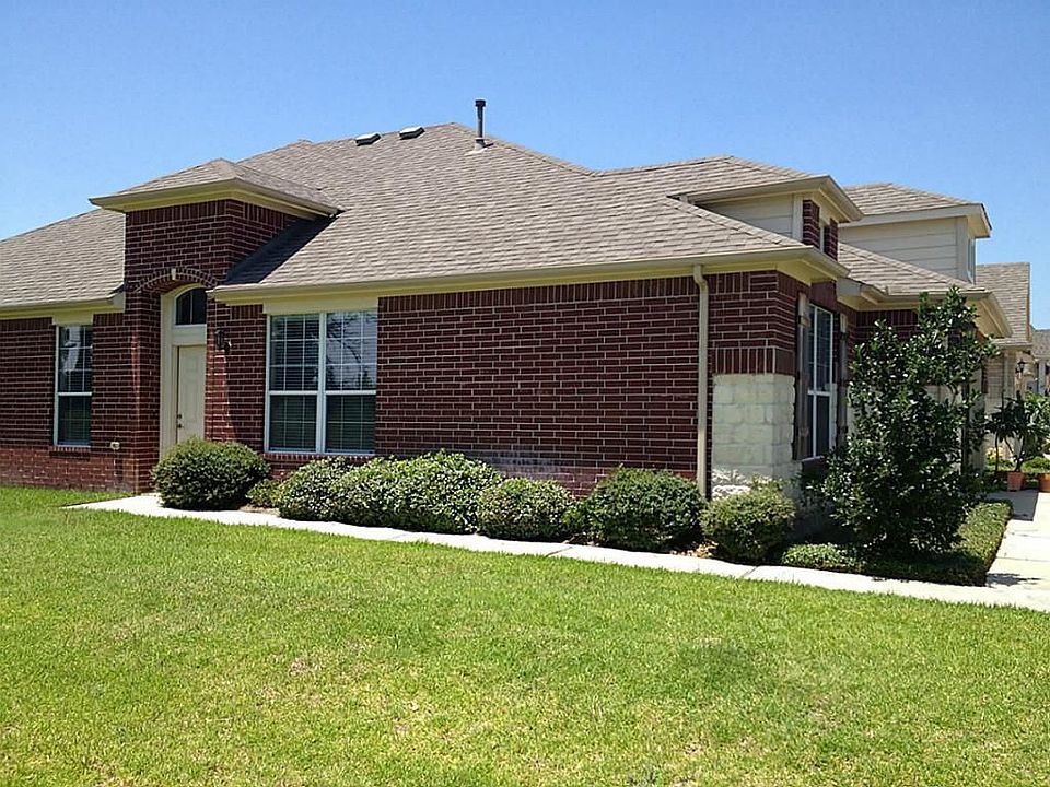 BEAUTIFUL end unit facing golf course. Island kitchen with stainless steel appliances, lots of cabinet space. Spacious master bdrm, large closet and bath with 2 sinks. Split plan. Large utility. Newly replaced flooring with Pergo. Tile in kitchen. Blinds throughout. Backyard has golf course view as well as dog park in site. Short walking distance to playground. Fully fenced small backyard with patio. Lawn maintained by HOA.