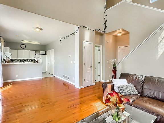 Beautiful Sterling Hills 3 bed/2.5 bath in cul de sac. Open and spacious 2 story with vaulted ceilings and gas fireplace in the living room. Wood flooring throughout the home on lower and upper level for easy cleaning. Kitchen is open to the dining area for entertaining and all appliances stay including the washer and dryer. Master bedroom has an attached private bathroom with a full walk-in closet. The other upper bedrooms share a Jack and Jill full bathroom. Large backyard with extended patio, fully fenced backyard and garden areas. Many dining and shopping amenities are close by including easy access to E-470. Call us today to schedule your private showing!