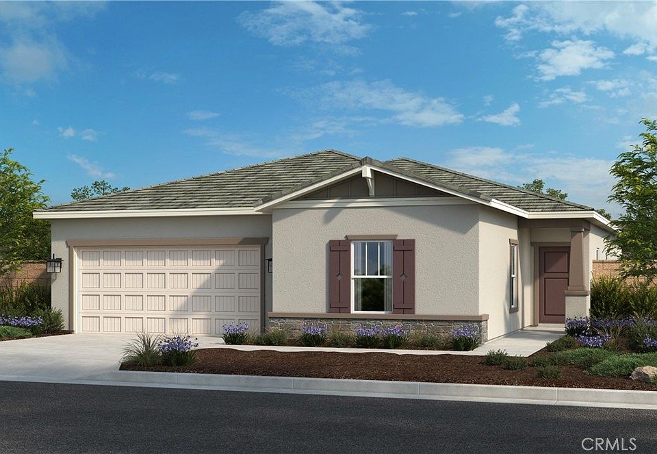 Beautiful single story home in the breathtaking community of Spring Mountain Ranch which is currently under construction. 4 bedroom, 2 bath home with generous great room, perfect for entertaining, and family gatherings. Large kitchen island, Quartz countertops, energy-star appliances make this home the perfect fit. Located walking distance from 6 acre community park, and multiple hiking trails. Upgraded flooring. Photo is a rendering of the model. Buyer can either lease or purchase the Solar.
