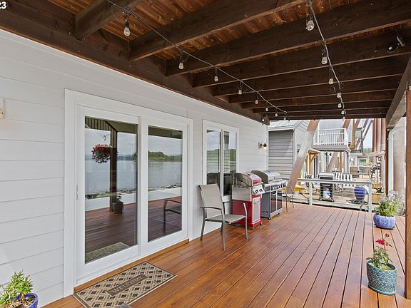 Welcome to your perfect weekend getaway or year-round retreat! This stunning floating home offers an idyllic setting with unobstructed east-facing views showcasing the Columbia River, Mt Hood, McGuire Island, and awe-inspiring wildlife. Wake up to breathtaking sunrises on the front deck and unwind with mesmerizing sunsets right from the comfort of your primary bedroom.Inside, you'll discover an open layout with vaulted ceilings, a kitchen with cherry wood cabinets, granite countertops, and stainless steel appliances. The home boasts 2 bedrooms, each with a spacious walk-in closet. Convenience is at your fingertips with a main floor laundry room and ample storage space.Nestled within the renowned Big Eddy Marina, this retreat-like setting offers exclusive amenities. Take advantage of the private boat launch and secure parking. The marina fees cover essential services such as water, sewer, and garbage, ensuring a hassle-free lifestyle.Not only does this remarkable property provide a serene and picturesque escape, but it also offers practicality. With a float rating of 5, this floating home qualifies for financing! Don't miss this opportunity to own your dream floating home in a truly remarkable location. Embrace the beauty of the Columbia River, relish the serenity of wildlife that surrounds, and make unforgettable memories in this waterfront oasis.