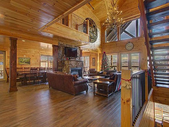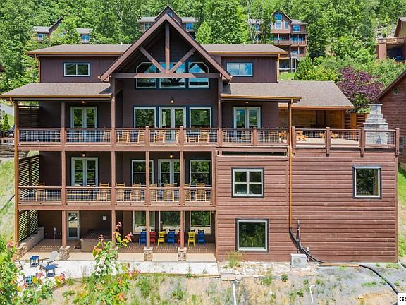 Pool cabin with a view! Excellent income producer! 404k in 2019 Already with 236k on the books for 2021 with a projection of 500k plus. New in 2018 with 7,448sq.ft. Beautifully designed and decorated with larger groups in mind. New in 2018. 9,599sq.ft plus an additional 3,000sq.ft of outside decks and Veranda. 16 bedrooms 19 bathrooms sleeps 64. Close to Pigeon Forge with easy access and lots of parking.