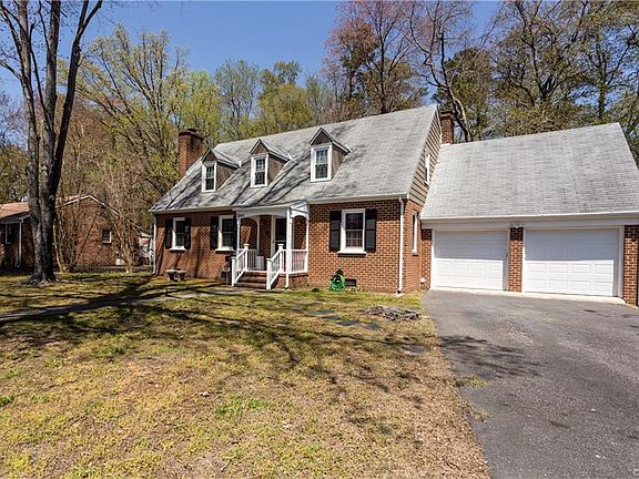 Welcome Home to this Stunning Stately all Brick Cape Cod located in the Woodmere Subdivision! This one of a kind Cape has tons of upgrades and unique features as well as plenty of space for your enjoyment! With a combination of beautiful multi color tile flooring, hardwood and freshly cleaned carpet! You will immediately fill the grandness from the foyer! The 1st floor Bedroom with attached full bathroom that is currently being used as the formal living room with a brand new remote ceiling fan and hardwood floors! Spacious family room w/ fireplace. Your formal dining room with hardwood floors! Eat-in Kitchen w/ granite countertops, SS appliances and tile flooring ! Huge multi purpose room w/ fire place! Unique wood and tile combo staircase. Second floor has a full size double vanity sink bathroom. Two large bedrooms, one with a bonus room that was finished and can be used as a 5th bedroom , playroom and/or sitting area! Master suite with 3 large closets, a separate vanity area and full bathroom! Fenced in lot, located only 5 minutes away from Fort Lee, minutes away from shopping and dinning and the amenities of Historical Petersburg you will not be disappointed!