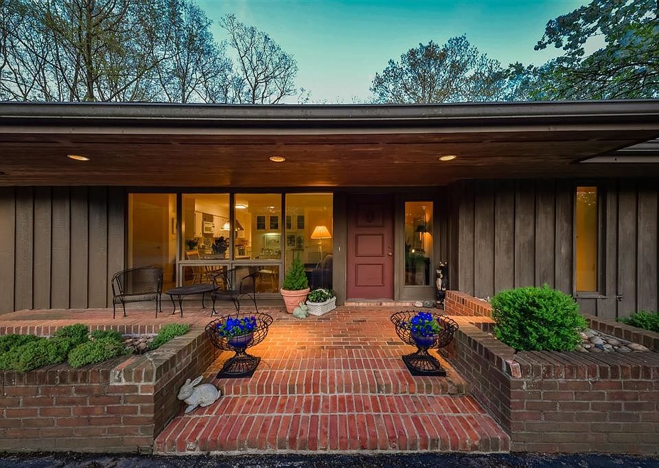 MID-CENTURY MODERN LIVING IN A SPECTACULAR SETTING. Just beyond where the picturesque Foster Bridge spans the Huron River, a private driveway leads to this mid-century modern, ranch-style home. Walls of windows provide an abundance of natural light and dramatic views of the changing seasons from nearly every room of this peaceful retreat. The living and dining areas feel modern and airy. They are ideal for entertaining, with sliding doors opening to two decks. The kitchen features a Viking range and two large ovens, Sub-Zero refrigerator, large pantry and eating space. The family room is perfect for large informal gatherings with built-in seating in front of the raised hearth. The beautifully updated master bath features a quartz countertop and a soaking tub surrounded by glass tile. The lower level den is warmed by a fireplace, with a wall of glass sliding doors leading out to the yard. Two bedrooms with expansive windows and a full bath complete the lower level. Designed to take full advantage of the spectacular setting, this beautiful home is within walking distance of Barton Hills Country Club, the Huron River, and is close to all that Ann Arbor has to offer.