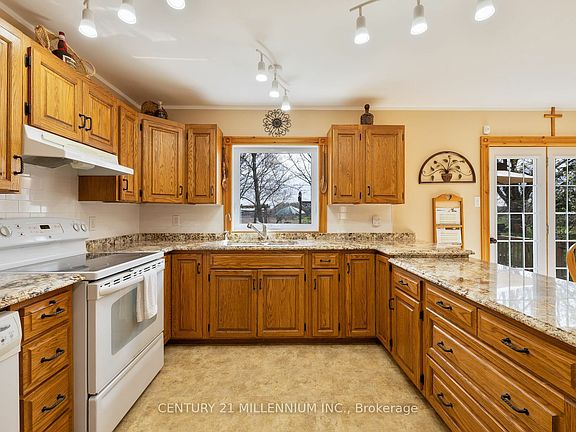 All brick bungalow on country lot gives you the privacy you want with the conveniences close by. Double insulated garage with openers and remotes...fully paved driveway! Spacious home with 3 bedrooms and laundry on main level... Huge kitchen with granite counter tops and walkout to deck and 5 person hot tub! Main floor office! Spacious sunroom addition with skylights, propane fireplace, and 3 walkouts to yard. 200 amp service! New windows! New furnace! New walk in shower in master ensuite bath! GENERAC whole home generator! Basement partially finished with gas fireplace and separate entrance ....great potential for future in-law suite. Priced to sell!