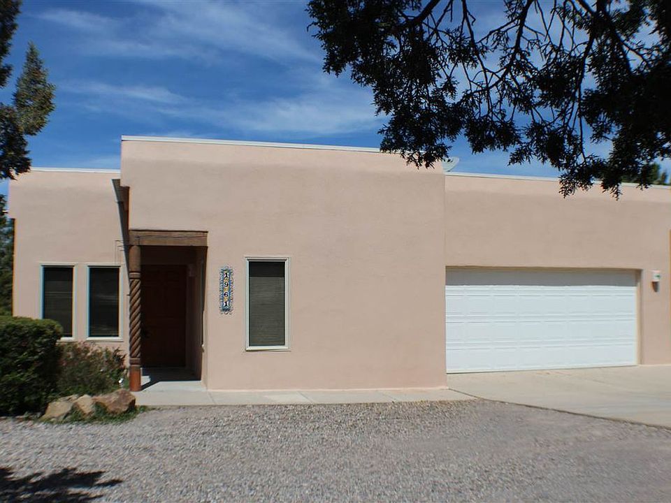 Beautiful southwestern style home in desirable subdivision. This 2 bedroom, 2 bath features large living area with high ceilings accented with wood vigas, spacious kitchen with lots of cabinet space plus a pantry, dining area, master bedroom with gas log fireplace, tiled walk-in shower in master bath, large walk in closet, covered patio in back, hot tub and dog run. Bedrooms have brand new carpet and the rest of the home is ceramic tile. Situated on a little over 1/2 acre lot with trees, private fenced back yard, carport and storage in addition to the 2 car attached garage. The home was recently re-stuccoed and has a metal roof. Nicely landscaped. Great location - just a short drive for shopping. Low maintenance and priced to sell!