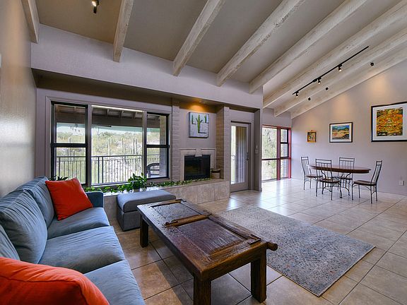 Spacious, lovingly maintained, territorial style townhome in a small, quiet community tucked into a fabulous Foothills location - close to everything. Bright, light-filled, gourmet kitchen with European-style cabinets opens into Great Room with vaulted timber ceiling, cozy fireplace and floor-to-ceiling windows offering fabulous views. Covered upper deck and charming patio below provide peaceful retreats, breathtaking sunsets and inspiring scenes of the Sonoran Desert and Catalina Mountains. Master bedroom features two walk-in closets, master bath with spa-style shower. Guest room includes hideaway Murphy bed, guest bath provides hotel luxury. Too many custom upgrades to list. Community offers sparkling pool and tennis court. No showings until Saturday 12/5.