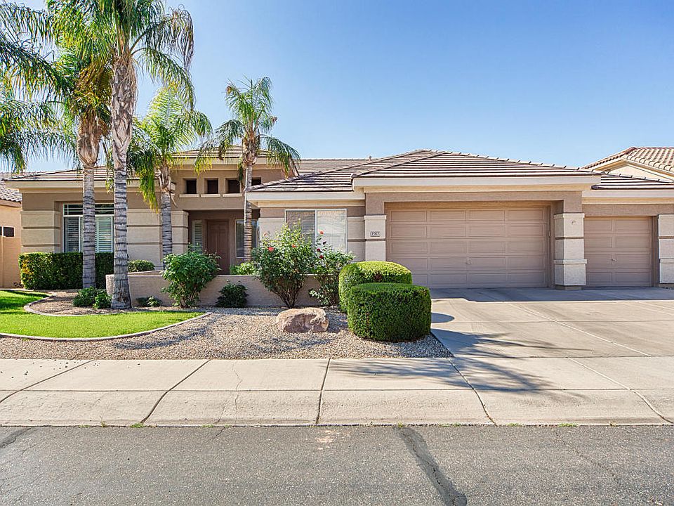 Wonderful single level 5 bedroom, 2.5 bathroom home with a 3 car garage, and RV gate! This home sits on hard to find lot that is over a 1/3 of an acre (15,263 sqft) and backs to a quiet walking path. Spacious floorplan with separate living and family rooms, vaulted ceilings, newer paint and carpet, and plantation shutters throughout. The open eat-in kitchen features granite counters, island with breakfast bar, gas stove, and upgraded stainless appliances. Newly updated garage with new paint, new light fixtures and switches, epoxied floor, and built in cabinets. The backyard includes a large covered patio with pavered walkway, rock water feature, and multiple fruit trees. Fantastic Chandler location close to shopping, dining, and freeway access. Check out the 3D tour!
