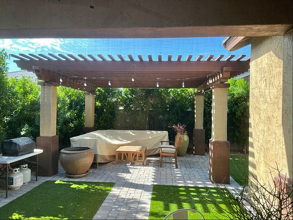 Nestled in a prime location, this stunning rental property offers convenience and luxury. Situated less than a mile from the 202 Freeway with seamless access to the 101 to get you to anywhere in the valley swiftly. Built in 2019, this 3-bedroom + den, 2-full bath, Fulton home boasts over $100K in upgrades, making it a gem of modern living. It includes a spacious flex space that is perfect for a work-from-home arrangement or can be used for a variety of functional needs, such as a playroom, or guest room. The open layout, combined with the 10 ft ceilings, extends to the backyard, creating a sense of grandeur and seamless indoor-outdoor living. Jump into a beautiful brand-new pool or relax under the pergola in the secluded and shaded backyard lined with Ficus columns. Don't miss the opportunity to make this exceptional property your new home. Contact us today to schedule a viewing! Key Features: Kitchen: Bright, easy-to-clean quartz countertops Kitchen Aid Commercial Line Appliances (gas range, refrigerator, vent hood, dishwasher) Dual sinks and garbage disposals Laundry: Largest washer and dryer available on the market (Maytag washer 5.3 cu, gas dryer 8.8 cu with steam refresh option) Outdoor Living: Brand-new pool and covered pergola surrounded by Ficus columns Spacious front and back patios Indoor Living Spaces: shutters for all windows Upgraded wall master closet with ample functional storage Master bath spa shower (overhead rain shower, handheld shower wand, standard wall-mounted head) Guest bathroom with upgraded shower tub Ceiling fan lights in all rooms for comfort and energy efficiency Plenty of functional storage (Walk in kitchen pantry, 2 linen closets, entryway closet, additional kitchen cabinetry storage Additional Features: Pre-wired great room for 5.1 in-ceiling surround sound speakers, TV mount ready for a large 65-70 inch TV Wi-Fi-enabled utilities (thermostat, oven, dryer, garage door) Security system (ready for activation) Soft water throughout the home Reverse osmosis filter with crystal clear water integrated with refrigerator ice maker Healthy Home System with whole-house electronic air cleaner and 24V UV air purifier with odor absorption UV lamp 36" wide front door for easier move-in holiday light outlets 2 car garage with sturdy wall-mounted shelving Location Benefits: Proximity to top-rated schools, including CUSD and renowned charter schools like Great Hearts and Basis 2-mile drive to Crossroads Town Center (restaurants, shopping, essential services) 5- mile drive to three major East Valley social centers: Santan Village, Chandler Fashion Center, and Downtown Gilbert Homestead Park North is within walking distance, featuring a basketball court, pickleball court, playground, and ramadas with BBQ facilities. Walking distance access to the Arizona Canal, perfect for scenic walks and bike Renter is responsible for all utility and service charges (gas, water, electric) to initiate and/or close accounts as applicable by provider Renter will be responsible for changing air filters, R/O Filters and refilling salt for water-softner (service available for fee) Landlord will be responsible for landscaping and pool maintenance