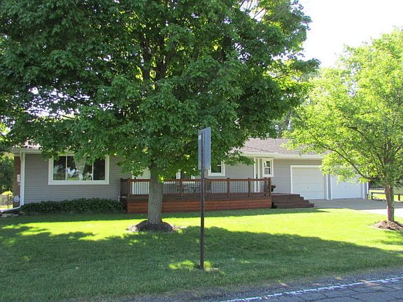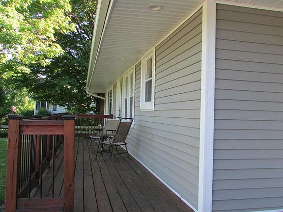 Looks wonderful because it is! In the last 2 years has had: new roof, siding, windows, doors, eaves troughs, boiler, water heater, paint, new vinyl, refinished hardwood floors, deck, septic system. Laundry hook-ups in 1st floor & lower level. Railroad tracks at back of lot. Fenced yard has shed. Really nice!