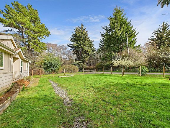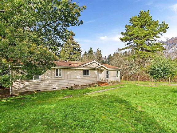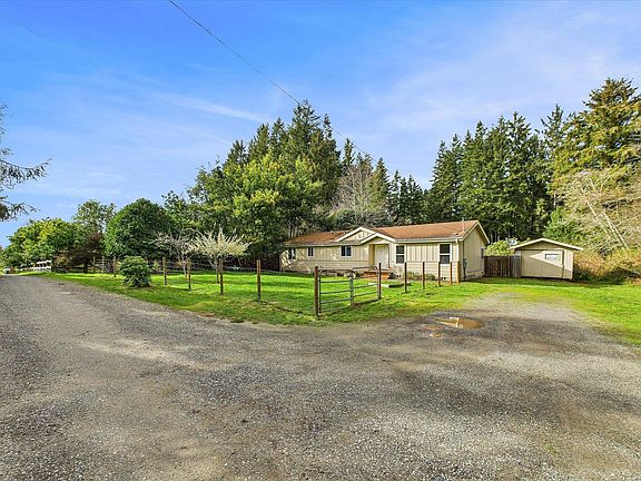 Great location! Nice country-like setting in Dow's Prairie. This single story 3 bedroom, 2 bath home sits on a totally flat, useable .65 acres. Ideal for hobbies, gardening pets and more. Move-in ready, this home is sunny and bright with an open floorplan. The spacious living and dining rooms have vaulted ceilings creating an airy feel. They walkout to the large deck overlooking the big backyard. The kitchen has an amazing amount of storage and features an island and breakfast bar. The primary suite features a large walk-in closet and luxurious 5 piece ensuite bath with a huge soaking tub! The large laundry room with additional storage is a plus. You'll love the big backyard with additional storage sheds garden beds and a chicken coop, Close to schools, town and the beach!
