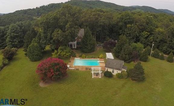 Wonderful country property just south of Charlottesville. Private hilltop setting with sweeping views across neighboring farm land. Located in a beautiful, largely undiscovered valley in southern Albemarle, this custom, one-owner home is imbued with old-world charm that reflects its owner's Baltic heritage. Towering oaks shade the brick home, which has great flow for indoor or outdoor entertaining. Elegantly landscaped yard includes a pool and pool house with sauna. A slate floored screened porch looks over the pool to the fields and mountains beyond. 31 acres includes pastures and hardwood forest, as well as a 2 stall barn. A lovely home and property that is just 10 minutes drive from Charlottesville. Owner financing available.