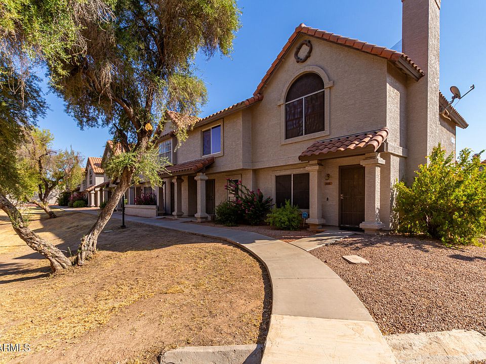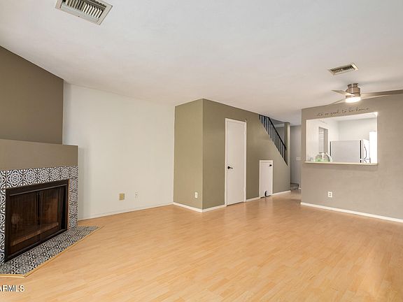 Beautiful two-story townhome in the Chandler Unified District centrally located with easy access to AZ-101 & 202, Chandler Fashion Center, and downtown restaurants. From your covered parking space, access the courtyard and covered patio then enter through the new glass sliding door. The living room features a wood-burning fireplace with adjacent dining area and renovated half bath. There is ample cabinetry in the kitchen, subway tile backsplash, and a stainless double oven/range. Both bedrooms are upstairs showcasing vaulted ceilings with fans—one has dual closets with mirrored doors and the other has a walk-in. The main bath has a tile surround and laundry area with washer and dryer included. Water heater replaced last year. Enjoy the swimming pool and other Heather Glen amenites.
