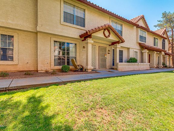 Adorable updated townhome located near Arizona & Warner close to everything, dining, shopping, downtown! Oak kitchen cabinets updated with a white finish. Features nice tile and fireplace. Both bedrooms have their own full bathroom. There are great schools in the area, quiet neighborhood, open floor plan with the convenient half bath downstairs for guests, large master bedroom, community pool nearby, neighbors attached only on one side! Cute private courtyard area. Tennis courts, swimming pool, covered parking.