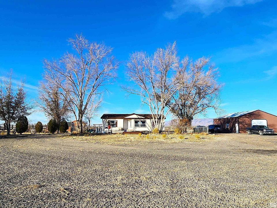 Homestead potential! Lovely home, LARGE SHOP, dryland pasture, pens, fenced & cross fenced. The home is a very comfortable split bedroom floor plan. Space for a woodstove if desired. Kitchen has a nice pantry & appliances will transfer. Expansive Mt. Lewis view from the front deck. There is a NEW roof, interior paint, & newer flooring in bedrooms. 3 animal sheds, large coop, dog kennel, 2 fenced garden spaces & 2 storage sheds. Central air & reverse osmosis. Call to view this wonderful property today.