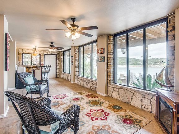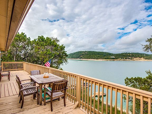 UNBEATABLE VIEWS, GORGEOUS SUNSETS AND DOUBLE WATERFRONT LOTS with 100 feet of deep water frontage! Perfect for short term rental income for large or multiple families, multiple family lake retreat, or just your own personal home away from home! Hard to find water frontage, deep water without a steep walk down, on Medina Lake. Stationary deck at water level, swim dock and a jet ski dock as well. Brand new staircase down to the water! Also new in 2020 -30 year roof, gutters, exterior paint, granite kitchen counters and kitchen appliances. Large lot has a carport and a 2 car detached garage with garage door openers. Huge circle drive with plenty of room for boats/trailers. Truly, an amazing home!