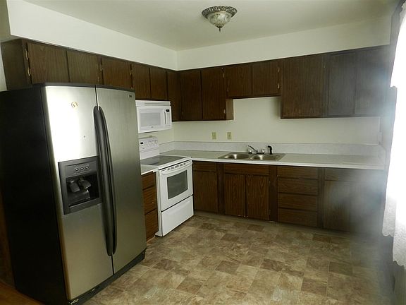 - KITCHEN: GARBAGE DISP, REFRIGERATOR, MICROWAVE, WOOD CABINETS, ELECTRIC RANGE