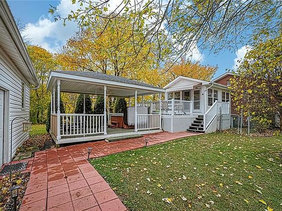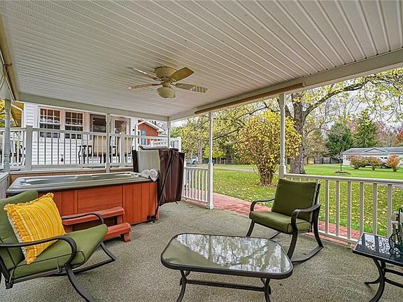 Your Christmas wish has just come true! Over 1.3 acres of level park-like yard! As much outdoor living space as you could hope for w 3 decks 1 w a retract awning, 1 covered w a hot tub & add'l outdoor patio w fire pit for those starry Winter nights! 4 season Sunrm w walls of windows & doors w a heat source to watch the snow fall on the gorgeous mature trees! FR w Bay Window steps away from updated E-I-K w Brkfast Bar, pantry & newer black appliances! Off the Kit the perfect mudrm for storage & access to the 3rd private deck! 2 spacious Br's or 1 as a 1st flr home office conveniently surrounding a beautiful full bath! The LL will knock your socks off w add'l living space a gameroom w FP, 2nd home office/school, Full BR w Huge closet & Full Bath, Laundry & utility rm! Imagine this space for the in-laws or a private apt w their own access door! The Car Monkey in your family will go crazy over the 3 car 30x40 garage w loads of storage, you may never see them again! Minutes to the Airport!