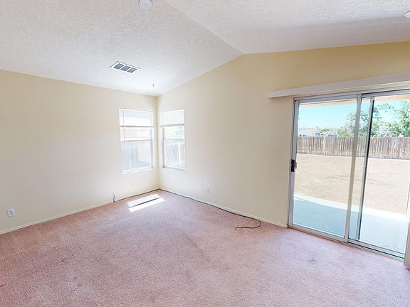 This home is nestled in a quaint Rio Rancho neighborhood, on Strawberry Drive! Perfect space for comfortable living.The backyard is bare and ready for you to create your oasis. The expansive windows not only showcase breathtaking views of the surrounding landscape but also infuse each room with a refreshing sense of openness. The well-designed floor plan offers ample space for relaxation and entertainment. The bedrooms provide a peaceful retreat. The primary bedroom has its own private en-suite bathroom, ensuring convenience and privacy.Don't miss the chance to make this delightful residence your new home. With its desirable location, and abundance of natural light.