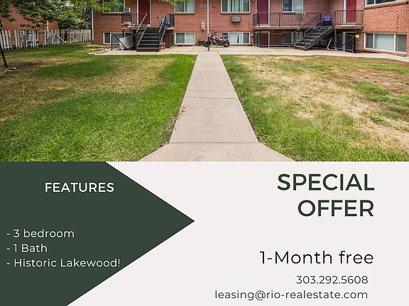 First Six Weeks of Rent FREE Look and Lease Special Come and join our Park 19 community! This unit offers a spacious layout, large rooms, and hardwood floors! From this unit you are a 5 minute drive to Walmart, Home Depot, Panda Express, Dutch Bros Coffee, Sloan's Lake and Edgewater Public Market. You also have easy access to 6th Ave for a quick getaway to the mountains. Set up a tour today and find your new home! This unit is available now! Rent: $1395/month Utilities: $105/month (covers water, sewer, gas, and trash) Application fee: $45/adult Deposit: $600 (subject to change pending results of background check) We are PET FRIENDLY! Refundable Pet Deposit: $300 Pet Rent: $35/month To qualify with us here at RIO you must: make twice the amount of rent per month; have good established credit (min two open lines of credit in good standing), no rental debt or evictions, and a clean background check. *Square footage is approximate. Pictures may be of a similar unit. Portable Tenant Screening Reports (PTSR): 1) Applicant has the right to provide Rio Real Estate with a PTSR that is not more than 30 days old, as defined in 38-12-902(2.5), Colorado Revised Statutes; and 2) if Applicant provides Rio Real Estate with a PTSR, Rio Real Estate is prohibited from: a) charging Applicant a rental application fee; or b) charging Applicant a fee for Rio Real Estate to access or use the PTSR. If Applicant provides Rio Real Estate with a PTSR: a)the PTSR must be available to Rio Real Estate by a consumer reporting agency/third-party website that regularly engages in the business of providing consumer reports; 2) the PTSR must comply with all state and federal laws pertaining to use and disclosure of information contained in a consumer report by a consumer reporting agency; and c) Applicant certifies that there has not been a material change in the information in the PTSR, including the Applicant's name, address, bankruptcy status, criminal history, or eviction history, since the PTSR was generated.
