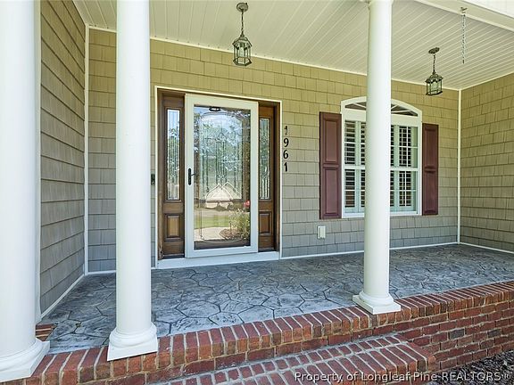 Beautiful home in the Gated and Golf Community of Carolina Trace. This 4 bedroom, 3 bath home immediately greets you with an open and bright vibe. Nice open floor plan with cathedral ceilings, formal dining area, and large living room and kitchen. Granite countertops with a peninsula, nice sized pantry, and eat in area with beautiful bay windows. Lets talk about the windows, gorgeous Plantation blinds on all the windows on the main floor! Primary suite is spacious with walk-in closet, soaking tub, & separate shower. 2 additional bedrooms on the main floor with a full bath. The second floor offers a wonderful private area perfect for a teen sweet with good sized 4th bedroom, walk-in closet, and full size bath with double vanities. Screened in porch, nice patio, small fenced area for small children or dogs, and huge cleared and flat lot! Double car garage with golf cart space. This house is ready for a new family! Make your appointment to view today.