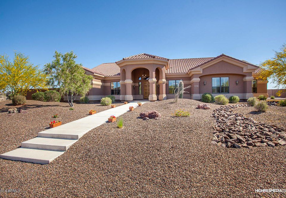 For more information on this property, contact the Listing Agent, Nancy Muslin at (623) 910-5469 or nancy@nancymuslin.com. Outstanding custom beauty on one beautifully landscaped private acre. 3568 sq. ft, 3 BD/2BA with designated office. Distressed pecan wood cabinets, doors and trim distinguish this home from others. 12 foot high ceilings, designer fans, plantation shutters add to the ambiance. 16'' tile in the right places, double ovens, gas cooking and granite with tile backsplash, large walk-in pantry begins to describe this luxury kitchen which opens to the great room. Surround sound in great room, instant hot water in kitchen and bathrooms, just push the button! The master bathroom is something special! Spa tub, beautifully tiled clamshell shower, large walk-in closet. Master bedroom with bay window and outdoor access to patio. RO water filtration, soft water. 3-car finished garage with attached cabine