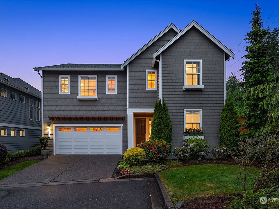 Meticulously maintained model home offers high-end finishes + spacious interior. Nestled in coveted Reserve at North Creek community, modern residence sits at end of cul-de-sac with gorgeous landscaping. Shake siding enhances architectural appeal of exterior. Walking into home, note natural light + open-concept layout. Fireplace + hardwoods provide refined aesthetic. Premier stainless appliances + island define gourmet kitchen. Guest bedroom suite on main level. Upstairs are 3 bedrooms + additional living area. The primary suite boasts an incredible walk-in closet + bath with a soaking tub. Entertain on patio in fenced backyard lined by mature trees. Two-car attached garage + near major freeways (I5, 405, 522).