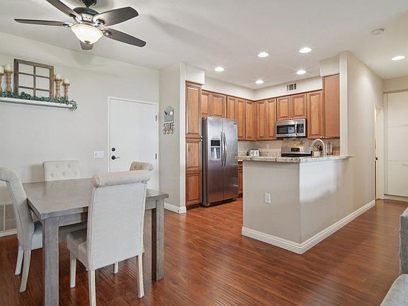 Experience effortless single-story living in this beautifully upgraded ground-level, no-stairs 2-bed, 2-bath residence, featuring recessed lighting and a bright, welcoming layout. Enjoy seamless indoor-outdoor living with a glass slider that opens to a private front patio--perfect for morning coffee or al-fresco dining. The kitchen offers ample cabinetry and modern stainless-steel appliances, while additional conveniences include central air conditioning and a private 2-car garage.Nestled in the desirable Bella Palermo community, residents enjoy access to a sparkling pool, relaxing spa, and well-maintained common areas. A wonderful opportunity to own a stylish and comfortable home in a sought-after neighborhood--don't miss it!