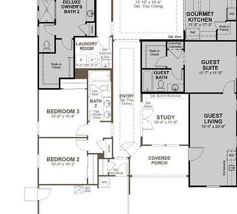 Explore this desirable Townsend home which has the Guest Suite ready May! This desirable 4 bedroom Plus Study, 3 bathroom, 2 car garage home faces North. Front yard landscaping; pavers in the driveway, walkway and entry. Included features: a welcoming covered porch; a quiet study; a spacious great room; a gourmet kitchen offering 42'' cabinets, quartz countertops, stainless-steel appliances, oven and microwave in the wall, a center island and a walk-in pantry; a roomy nook; an impressive primary suite showcasing a generous walk-in closet and a private bath with cultured marble countertops; oversized deluxe walk-in shower; a convenient laundry; a relaxing covered patio; 2-car garage. This home also offers additional windows and ceiling fan prewiring in select rooms, as well as airy 9' ceilings throughout