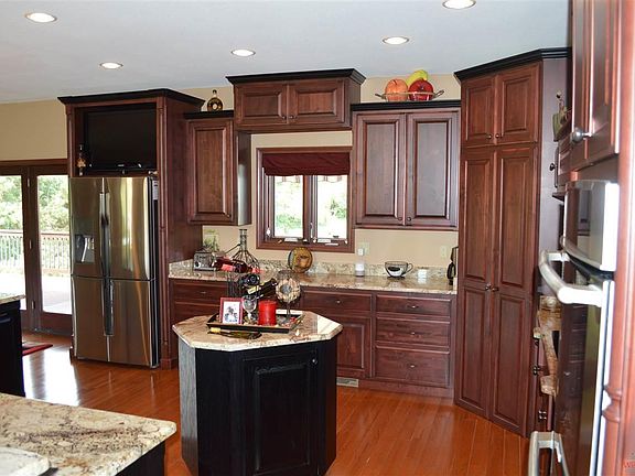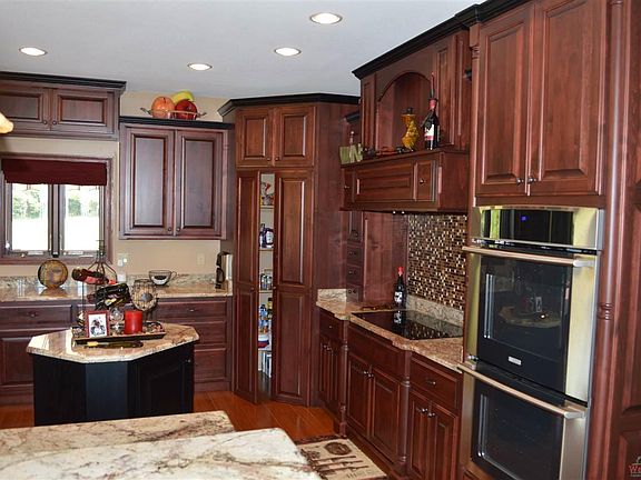 Masterful design and modern luxury are uniquely embodied in this 4 bedroom, 2.5 bathroom reverse lay-out (Master Suite upstairs, 3 bedrooms down) custom home with more than 4,300 square feet of living space. Custom cabinets throughout the whole home by Jake's Creative Woodworks. Complimenting the cabinetry is lighter colored granite with a very decorative bevel. The rear decks are built with the long life Trex Decking. All of this, and the features you can't see, were designed and built by this homes only owners! The master suite is a wonderful centerpiece, that is sure to impress. More of the creative cabinetry continue into the closet (w/automatic entry lighting), built-in dresser on each side of the closet. This closet is 9'x15' with more than enough storage for any couple. The master bath boasts a claw foot tub, dual shower, water closet, and more amazing cabinetry for the vanity and double sinks. The lower level has more than enough room to support a family. A full kitchen, very large living room, a full bathroom (w/a 4 foot shower), walk-out basement, stairway to the garage, large garage that has been used as a woodworking shop. Not to be left out is the storm shelter/safe room. Along with the amazing design features are an impressive list of technical "goodies." Toe-kick dust pan that is connected to the central vac. 101 recessed lights through the home. There is also a whole-home sound system that has separate control in each room. Dual control heat/AC, high pressure well, whole yard sprinkler system, central vacuum with easy sweep door. These are just a few, as there are so many more. Contact your agent so you don't miss this breathe taking home.