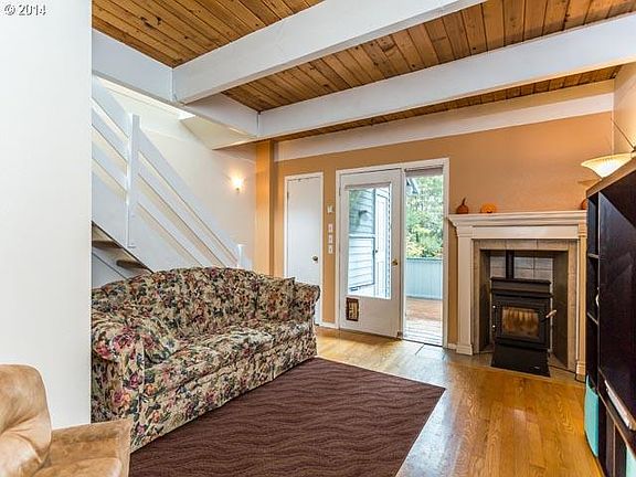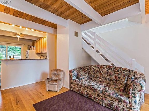 Stunning NW hme with a beautiful level backyard perfect for gardening. High ceilings, exposed beams, open staircase & hardwood floors. Newly remodeled Kitchen features breakfast bar, granite, stainless steel. Full Bath & Utility Rm on main! Spacious Living Room with pellet stove & deck with territorial view. Master Suite & second Bedroom upstairs. This stylish home is just steps away from the golf course & public transportation.