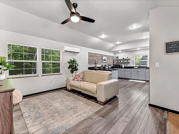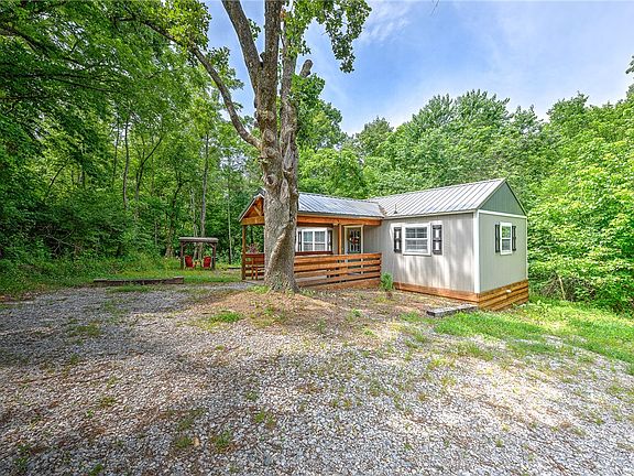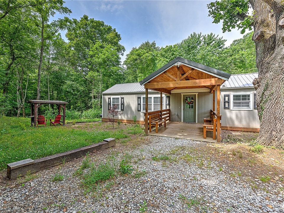 This tiny home is the perfect home for someone looking to downsize as this property offers 675 sq.ft. with 1bed/1bath with high end finishes throughout. Nestled on 1.25 acres, you will enjoy total privacy under the tree and park like setting. The craftsmanship has aesthetically been completed beautifully. Offering an open floor plan into the living area and kitchen area. The kitchen offers a full-size fridge that conveys with a stainless gas stove/oven. Black granite countertops and open shelving with pantry. This home has been used as an Airbnb and would make a great investment. The home features a permanent concrete block foundation.
