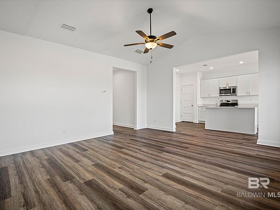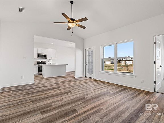 Move in Ready, Gold Fortified, New construction in this first Phase of Amberley Subdivision in Robertsdale! Convenient location just down the street from the high school, new Wawa location, Walmart and the Baldwin County Fairgrounds. This beautifully, constructed home offers 4 bedrooms, 2 full baths and a large open living area and kitchen. A beautiful white cabinet kitchen with a large island, features a full stainless steel appliance package, painted, soft close cabinets and light quartz counter tops. Enjoy a full laundry room and plenty of storage complemented by a 2 car garage. This kingslanding plan offers a spacious specified dining room, luxury light vinyl pank and a private patio area. One level living in the convenient location between I-59 and Foley Beach Express. Take advantage of everything Robertsdale has to offer and 15 minutes to the Beach! Buyer to verify all information during due diligence.