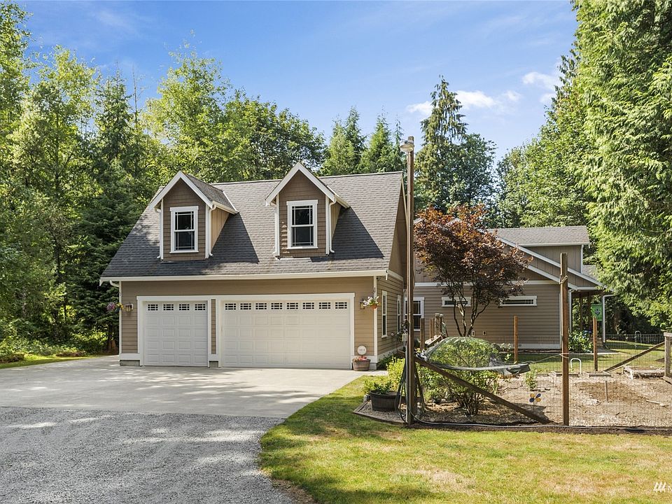 Gorgeous custom built rambler nestled on 5 private, scenic acres along 354 feet of the Stillaguamish River. With hardwood floors and Fir-wrapped trim, this warm and inviting home showcases nature views from every angle. The generous, well-equipped kitchen is made for entertaining, and the sunny garden space is ready for your vision. Two covered porches allow you to spend time outside year-round. Heat pump for heating/cooling, RV hookups+bonus of 500 sqft unfinished studio in loft above garage. Follow the trails down to the river and the beautiful, peaceful pasture...horses? Near I-5/Hwy 9, D'town Arlington, Costco, Amazon FC, Seattle Outlets & restaurants. A serene oasis where you can slow down and enjoy life, yet still close to everything!