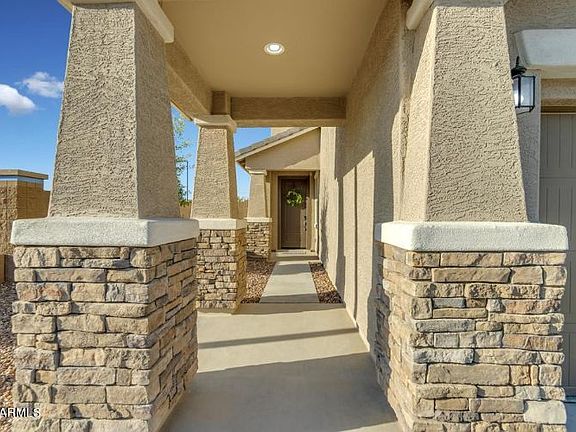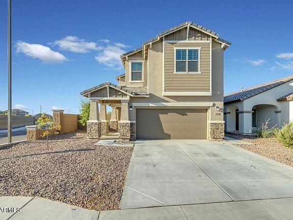 Charming 2-story home in the prestigious Blue Horizons planned community in Buckeye awaits its next loving owner! Inside is bright and spacious, w tall ceilings and giant picture windows allowing natural light to flow throughout. Chef-pleasing kitchen offers quartz counter tops, oversized wet island w breakfast bar seating, gas cooktop, recessed and pendant lighting, stainless steel appliances, luxurious cabinets w crown molding and double door pantry for plenty of storage. Giant master bedroom ensuite has two walk-in closets (2nd currently being used as an office), and master bath features dual sink vanity and shower tub with tile surround. Loft is perfect for 2nd living or game room. Sliding door wall system opens to back patio and becomes an extension of the great room. Covered back patio and pergola..